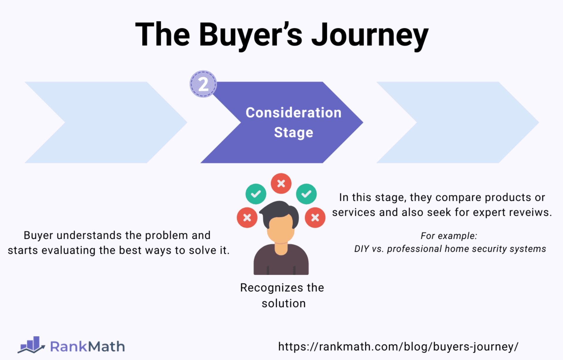 To understand each stage, we’ll use the topic of ‘home security‘ to illustrate what buyers are thinking, searching, and needing at each stage.