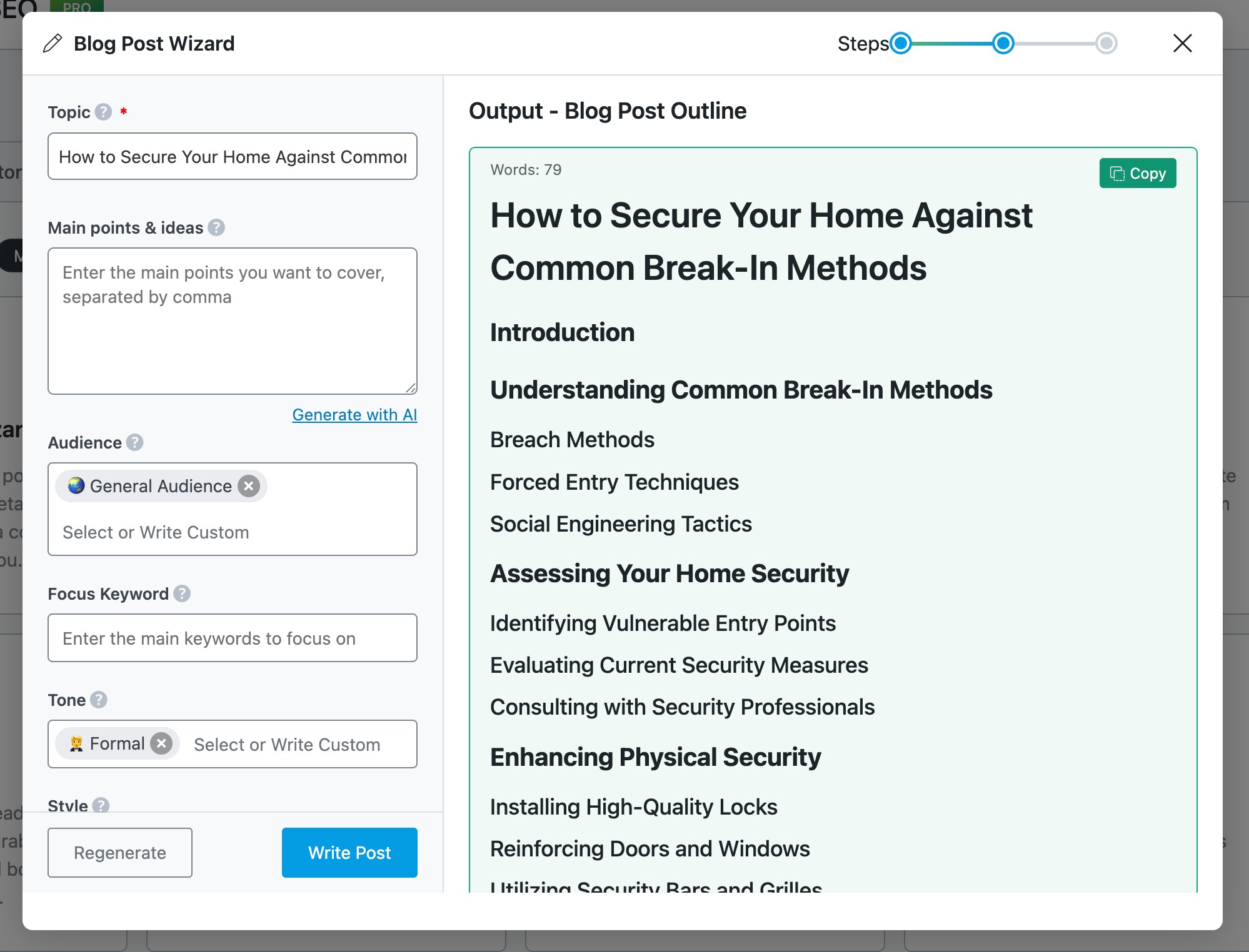 Once the outline is generated, it’s time to turn it into a full-length blog post. Click on the Write Post button to create compelling content for your post.