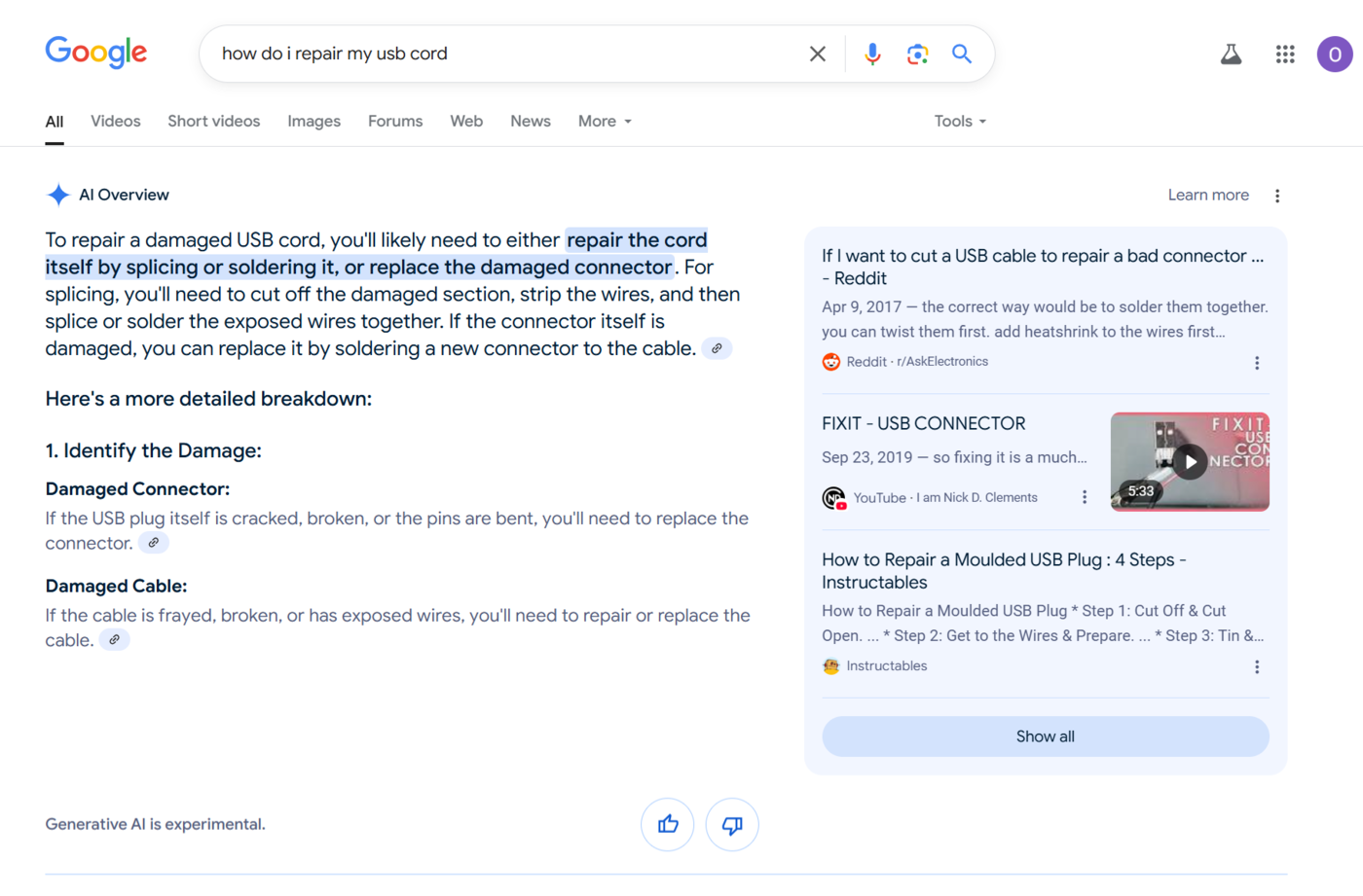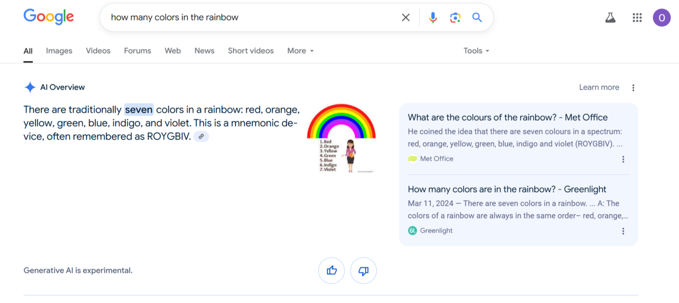 AI Overviews has many of the same issues that are common with generative AI. For one, it can make errors and take on the bias of the content on which it was trained or rely on for information.