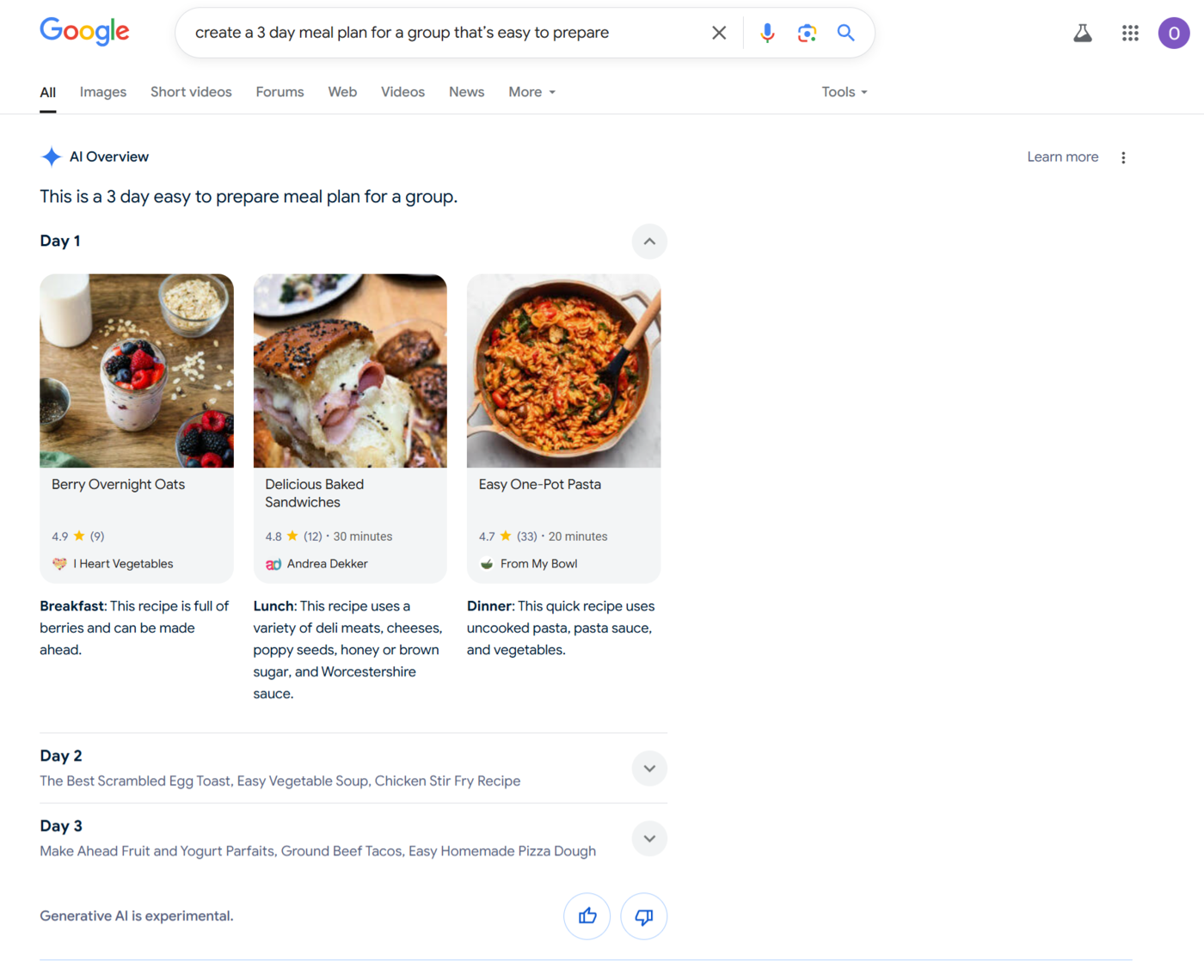 Google later released AI Overviews to users on May 14, 2024. This time, Google referred to it as “AI Overviews” and did not mention Search Generative Experience.