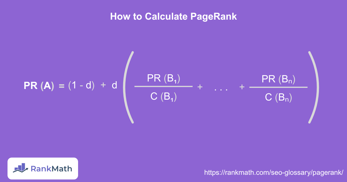 PR(A) = (1-d) + d (PR(B₁)/C(B₁) + … + PR(Bₙ)/C(Bₙ))