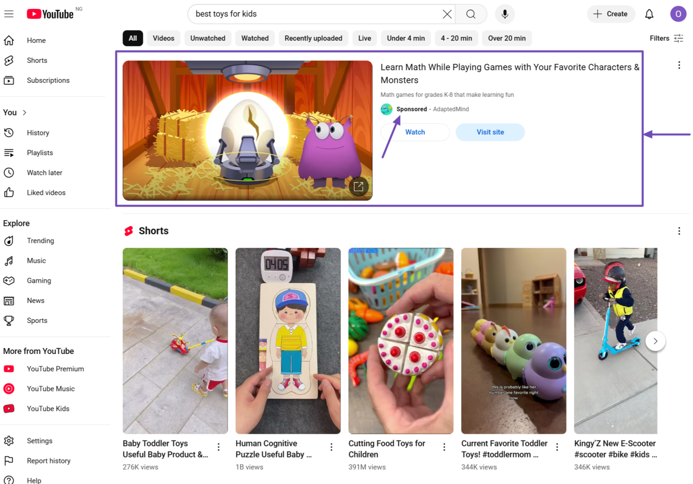 Search engine advertisements can also display on Google-owned platforms like YouTube. These ads can display before a video plays or while it is playing. The ads may also display at prominent locations on YouTube.