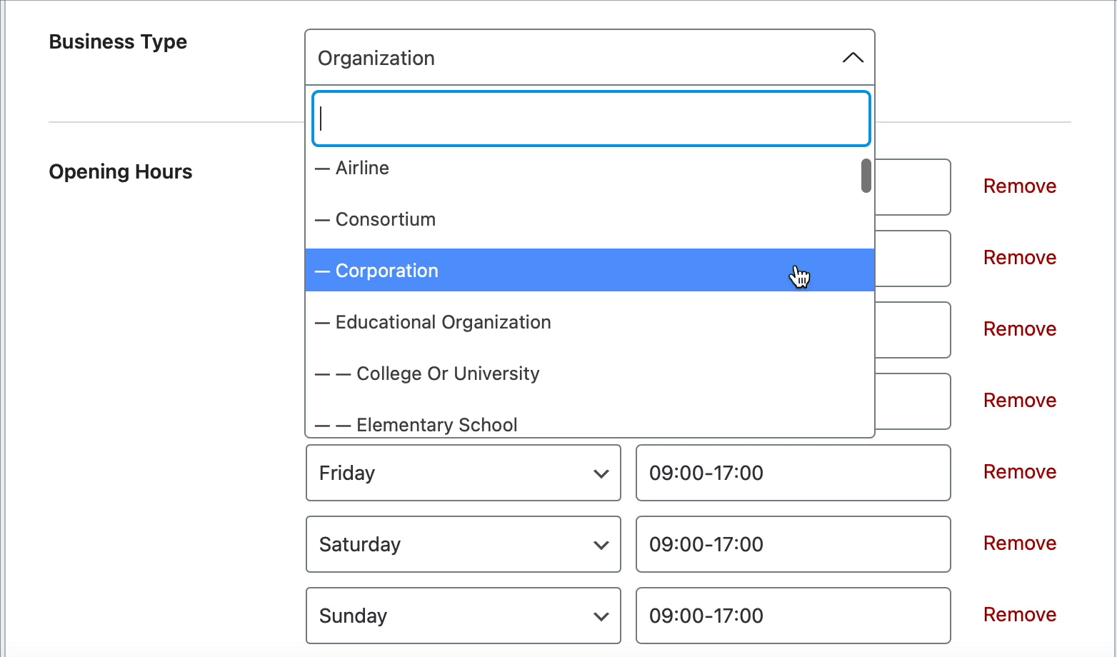 If you run a business that operates at more than one location – please refer to this guide about creating multiple locations with Schema using Rank Math.