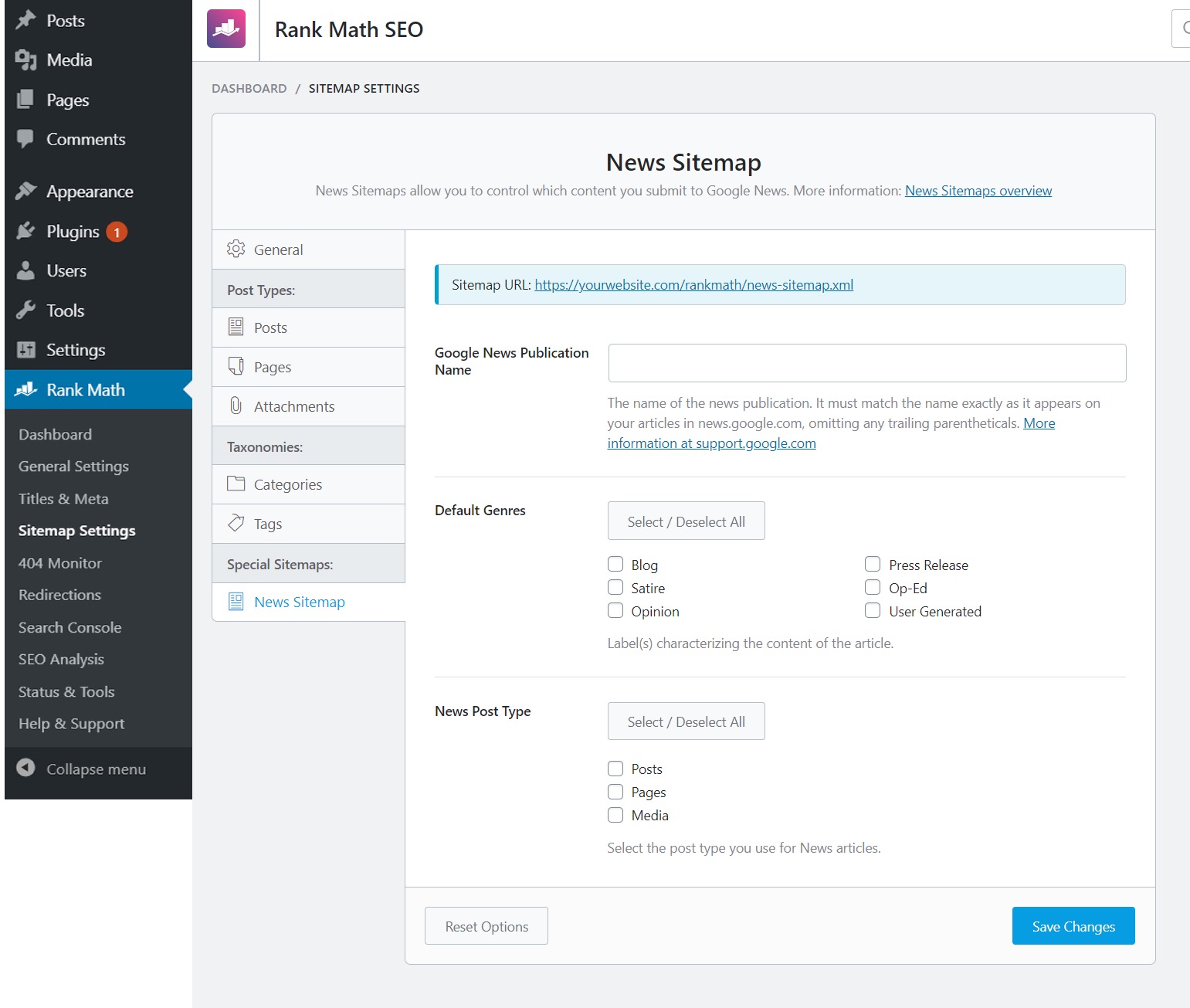 When you make any changes to Rank Math’s settings, including the news sitemap settings, it is recommended that you save your post by updating it or saving your post as a draft if you don’t want to publish it. This will ensure that all the changes that you make are not lost.