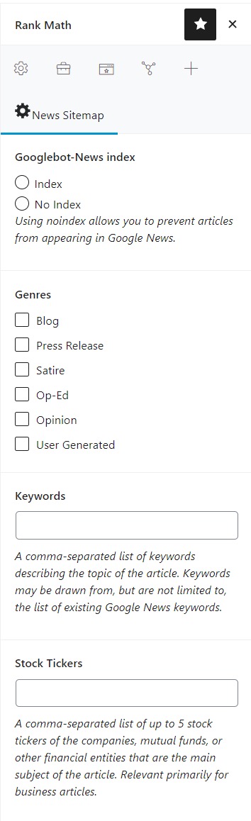 The second point is regarding the Genre and the Stock Ticker options. Technically, Google removed them from their Google News specification a long time ago, and hence we’ve removed them from our News Sitemap module.