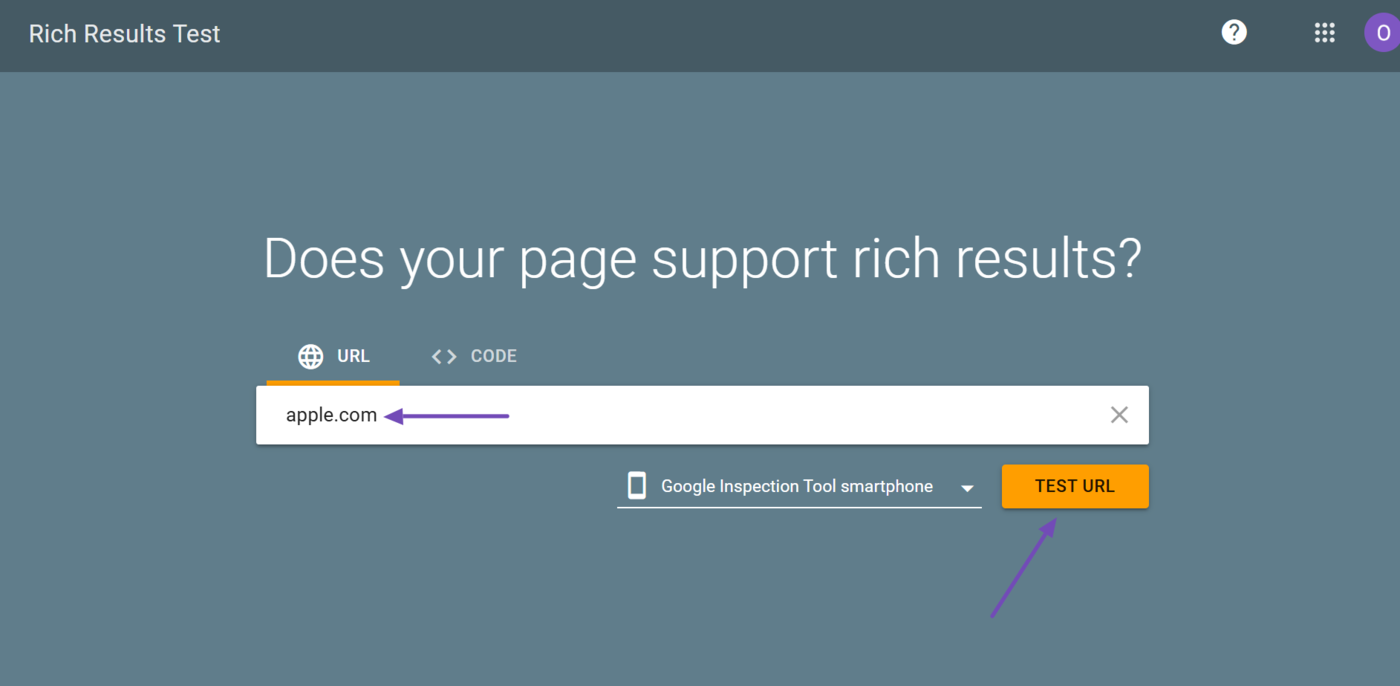 To get started, head to the Google Rich Results Test tool and enter the page’s URL into the available field. Once done, click Test URL.