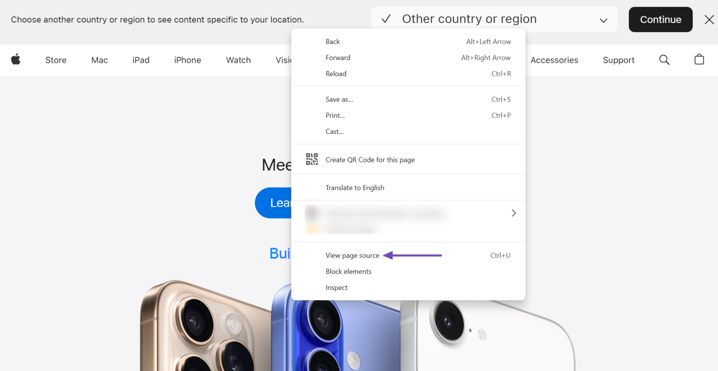 The page source is a straightforward method of identifying the structured data on any webpage. To get started, right-click anywhere on the webpage and click “View Page Source.” (The exact wording may differ depending on the browser.)