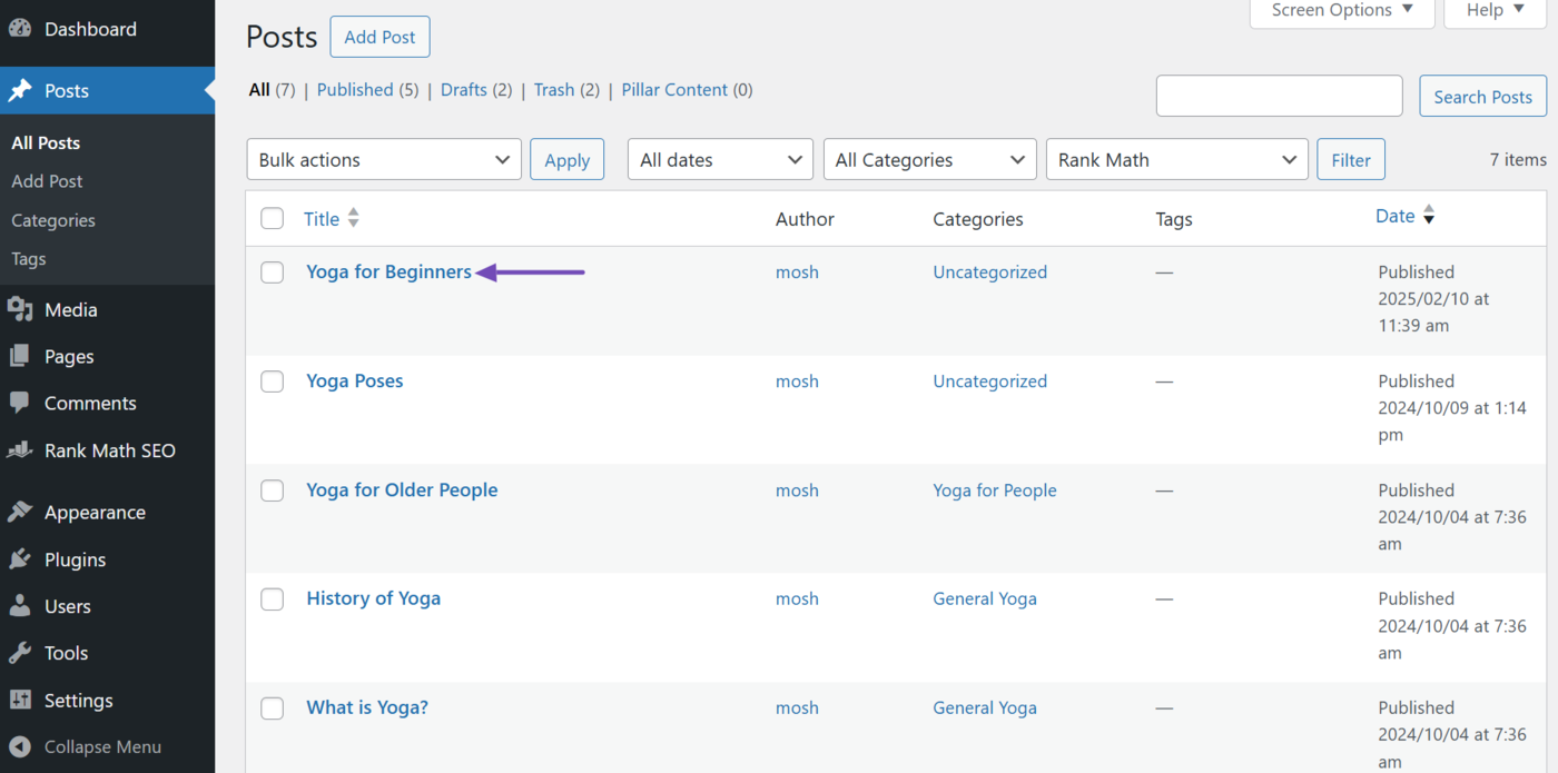 If you configured your Schema using Rank Math, head to the WordPress-dashboard → Posts of Pagina's.