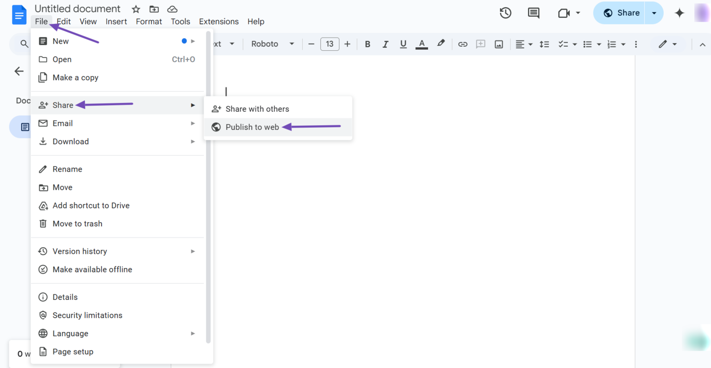 For example, you can publish a Google Doc to the web by navigating to File → Share → Publish to web. Google will usually index the content once you have allowed it to publish it to the web.